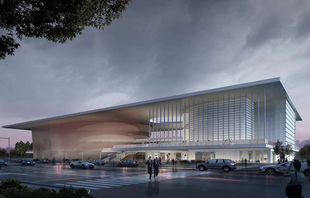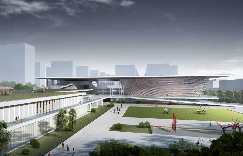 文化中心主要功能为公共艺术中心、1200人剧场和600人会议中心。公共艺术中心规划有400 座的多功能演艺厅、艺术展厅、艺术沙龙及艺术品商店等。